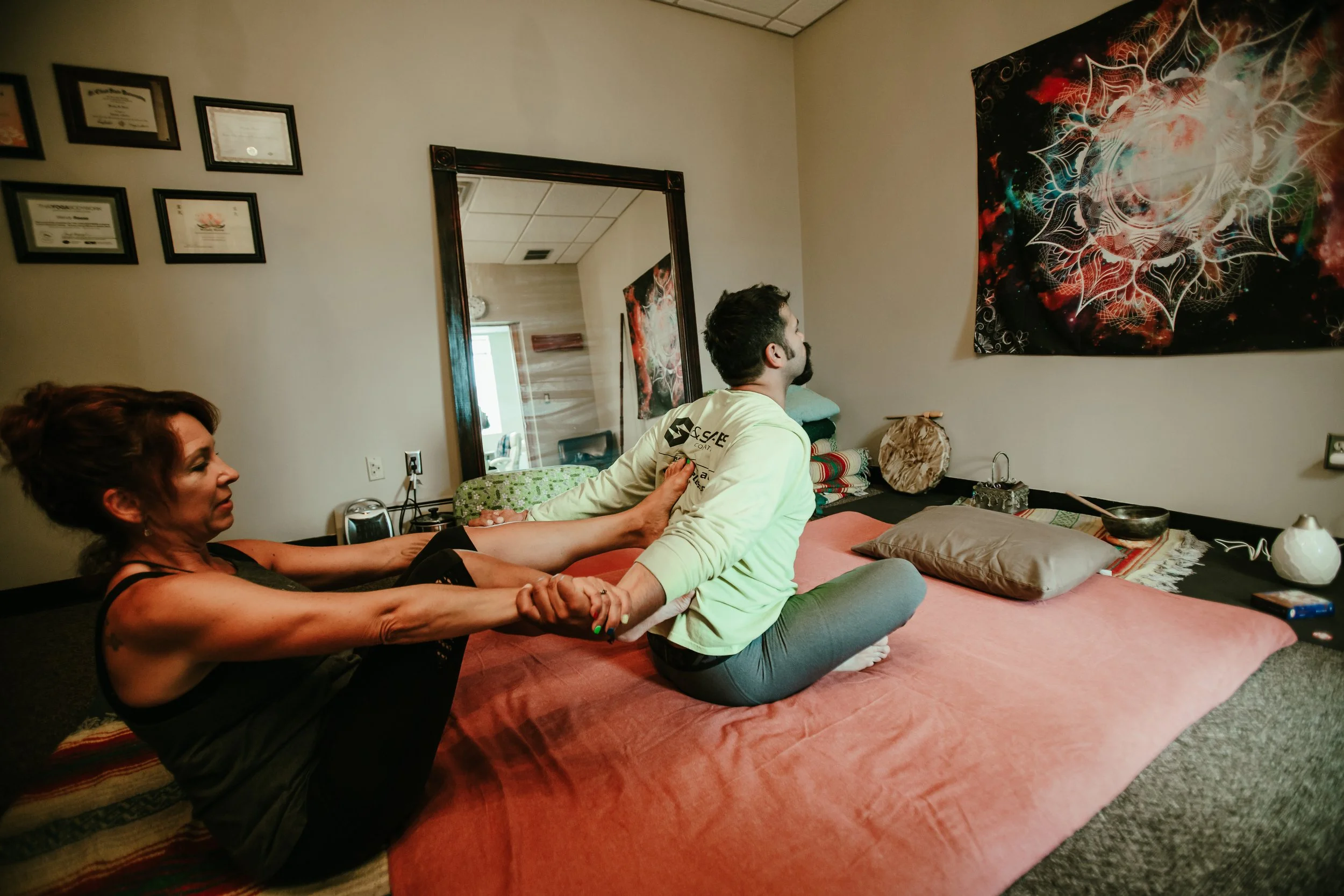 Each Thai massage session is designed to gently stretch and open your body while dissolving tension and promoting energy flow. You’ll remain fully clothed during treatment, guided through intentional movement and rhythmic pressure that unlocks both physical and emotional release.